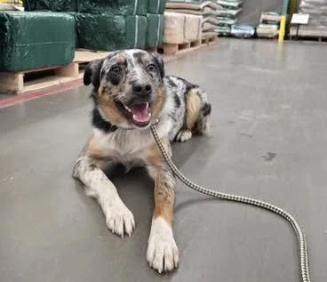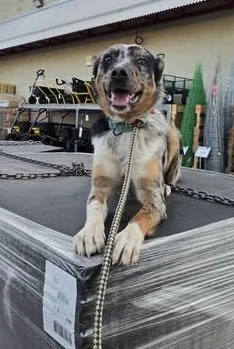 Kato chilling on an trip to Tractor Supply. He was unsure of the Big Ass Fan (true brand name)— but he worked through it.