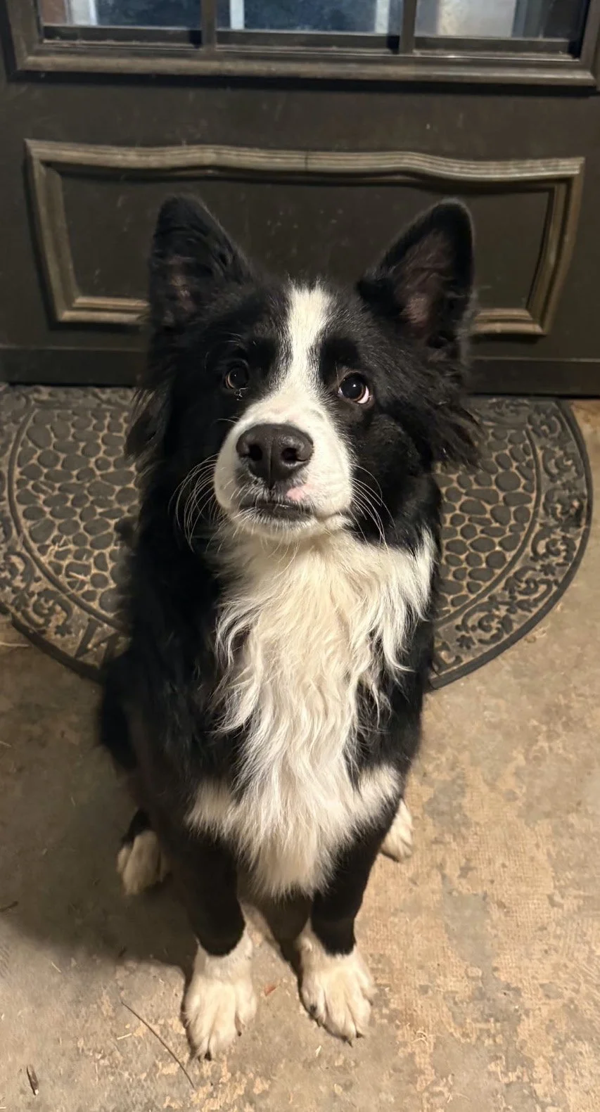 He is a Border Collie, 9 - 12 months old, good with dogs and people.