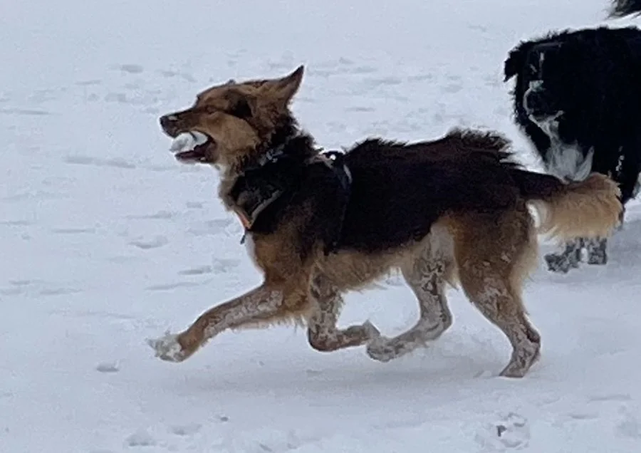 Olivia on the run in the dog park.