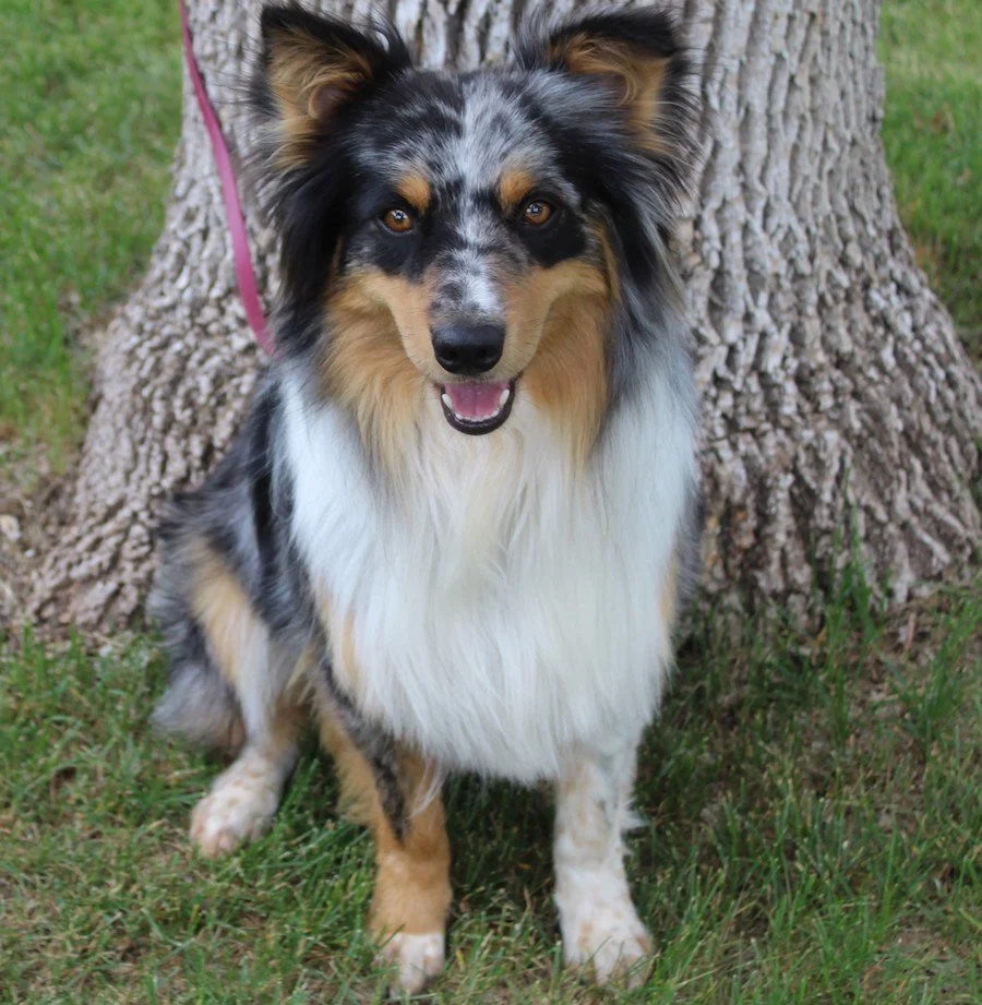 He is overweight at almost 50 pounds. Cash is a smaller Aussie and needs to lose 10 pounds with diet and regular exercise. This boy is a very typical Aussie wiggle butt, active and wants to be right next to his person.